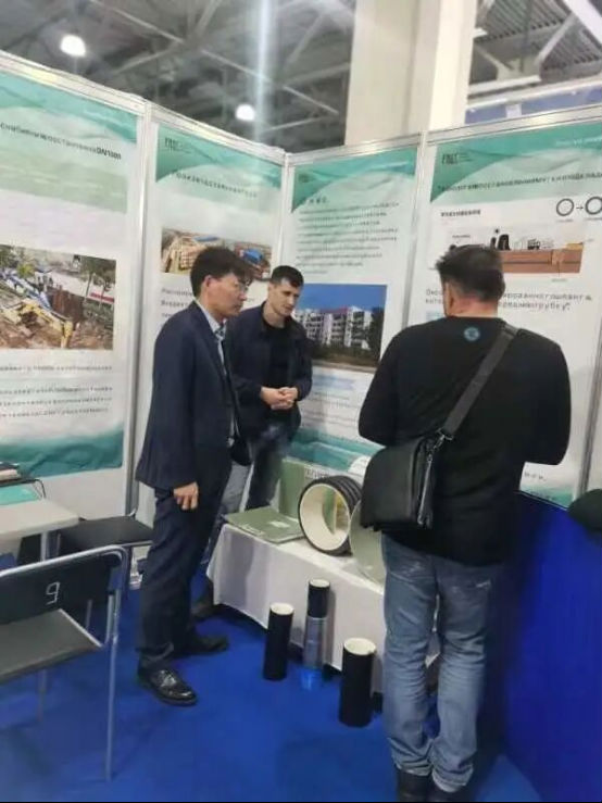 此次展会上,我公司带来了柔性内衬(压力管网)、热塑内衬(FIPP)、紫外光固化内衬(CIPP)等非开挖翻新、修复材料及相关工艺。通过对材料和工艺的讲解,以及对典型案例的展示,展位吸引了众多国外友人的关注。